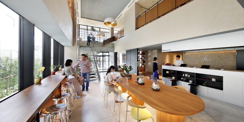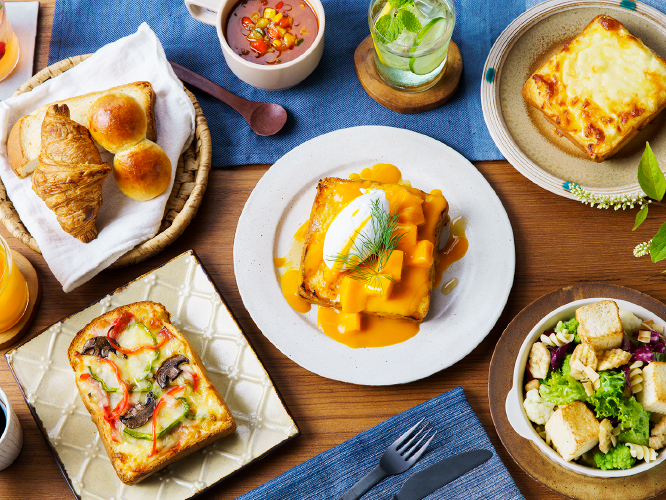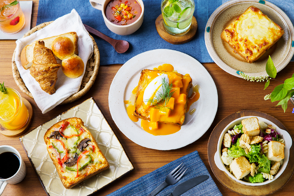 「OMO カフェ」では、朝食やスイーツ 、ドリンク を提供します。朝食は、クロックムッシュ、フレンチトースト、ピザトーストなど 5 種類から選べ、サラダ、スープ、ドリンク付き。明るい光が差し込む開放的な空間で、朝ごはんが味わえます。 宿泊者と宿泊者以外の方も利用できます。