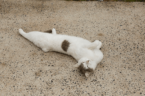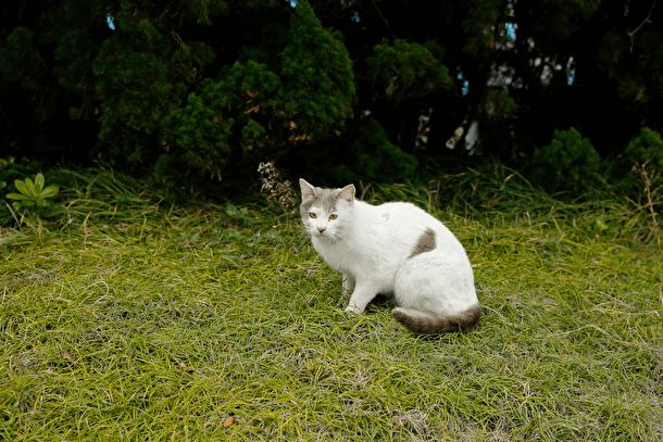 港に到着すると、さっそく島猫たちがお出迎え!わざわざこちらに誘導しなくても「ミャ〜」という声で人懐っこく近づいて来てくれるから驚きです。上品な白・黒、個性的なキジトラ、サバトラなどなど柄の種類・出かたもいろいろ。こちらが歩きはじめると、猫たちも一緒にそぞろ歩きしてくれました。
