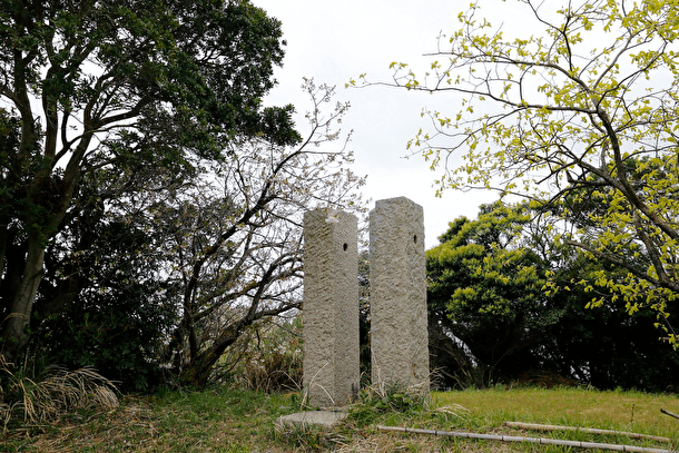 福岡県指定史跡になっている「藍島遠見番所旗柱台」。江戸時代に建てられたもので、小倉藩の中国密貿易船監視施設として建てられたもの。密貿易船を発見すると、いち早く小倉の藩所に知らせるために大旗をこの柱を使い上空に掲げて知らせたのだとか。歴史を刻んだ旗柱台は、ひっそり佇むように健在していました。