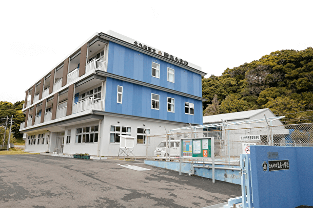 爽やかな校舎の色が目を引く「藍島小学校」。