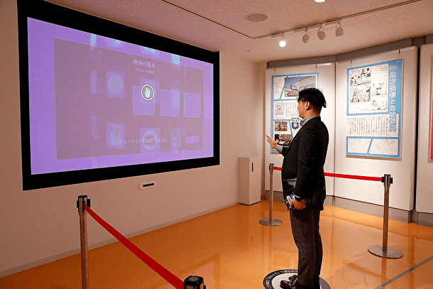 入場パスしたら常設展をのぞいてみましょう。松本氏の生い立ちやこれまでの業績を、パネルやスクリーンなどでわかりやすく紹介しています。