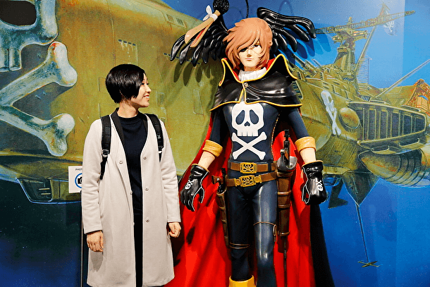 「宇宙海賊キャプテンハーロック」の主人公の等身大フィギュア。ぜひ一緒に写真を撮って、訪れた記念に。最近では海外からの観光客も多く訪れ、まさに「ポップカルチャーに国境はない」ことを実感できます。