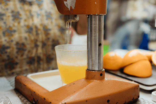 現在はもう生産されていないという手動式ジューサーで絞られる新鮮な果物を使ったジュースは絶品。その時々で入荷したオレンジやグレープフルーツを絞った正真正銘の「100%ジュース」です。