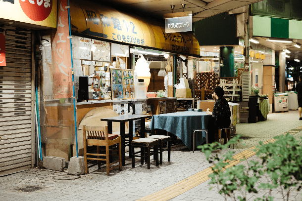 学校帰りの学生や、家族連れ、買い物途中の主婦やサラリーマンなど、幅広い世代から愛される『もりしたフルーツ』。遅くまで営業しているので、飲んだ後のシメの一杯にもオススメです。