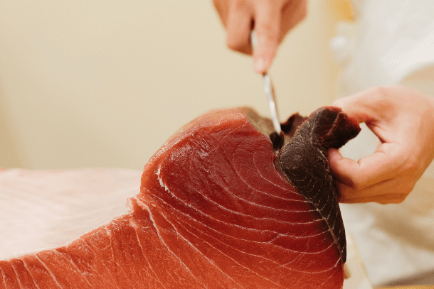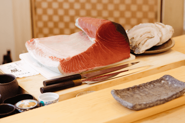 カウンターに立つのは、大将の塚本弘幸さん。なんでも福岡県糸島市にある、行列ができることでも有名な鮮魚・海鮮料理店『塚本鮮魚店』の三男なのだとか。