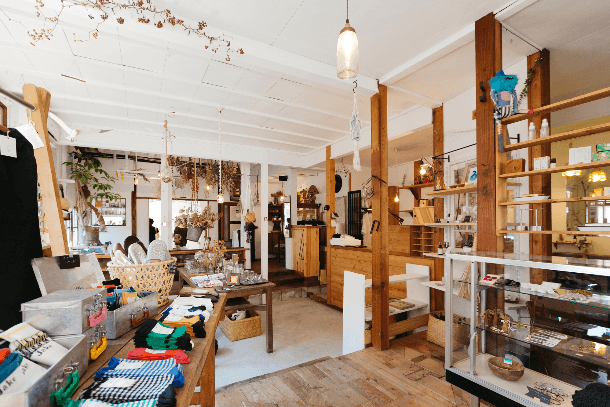 築60年のアパートをセルフリノベーションした店内には「暮らしを自由に、自分らしく。」をコンセプトに、厳選された「使い心地の良いモノ」が並びます。