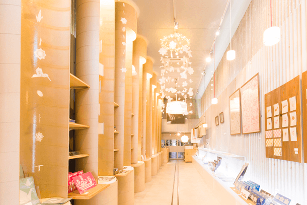 「和紙と営む丁寧な毎日」をコンセプトに、美濃和紙を始めとする和紙や和紙雑貨を販売するセレクトショップ。元々は倉庫だったという建物を活用した店内には、人気の便箋やのし袋、折り紙などが豊富に揃います。