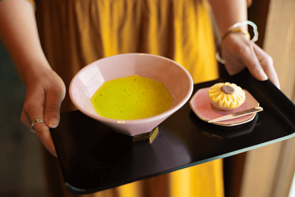 日本の伝統や良いモノを発信できる場所にしたい、との思いからオープンをした日本茶メインのティースタンド。契約農家で有機栽培の京都「播磨園製茶」を使用し、シンプルなドリンクからスイーツまで展開しています。