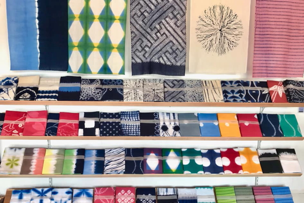 江戸時代から続く有松・鳴海絞りを受け継ぎ、心こめて作り上げる”メイドインアリマツ”の絞り。日本遺産にも登録された有松の町に400年伝わる染色技法です。ハンカチなどバラエティ豊かな品揃えで、お土産にもお勧め。